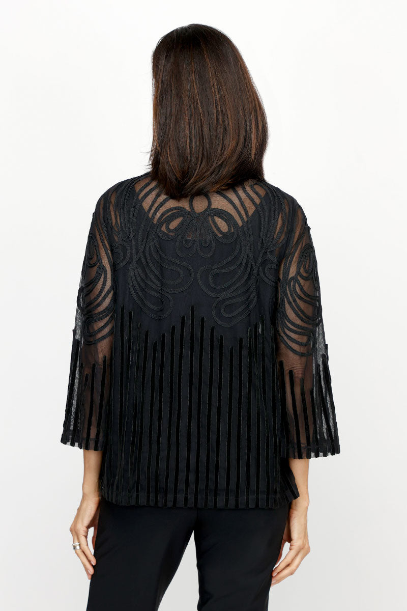 Soutache is back! And what makes it the Lines & Swirls Soutache Jacket so special is the shining soutache ribbon that loops a swirls on lightweight, yet durable mesh. The fit is easy and comfortable, but the look is refined. It's a great choice for an occasion that calls for a little something special.
