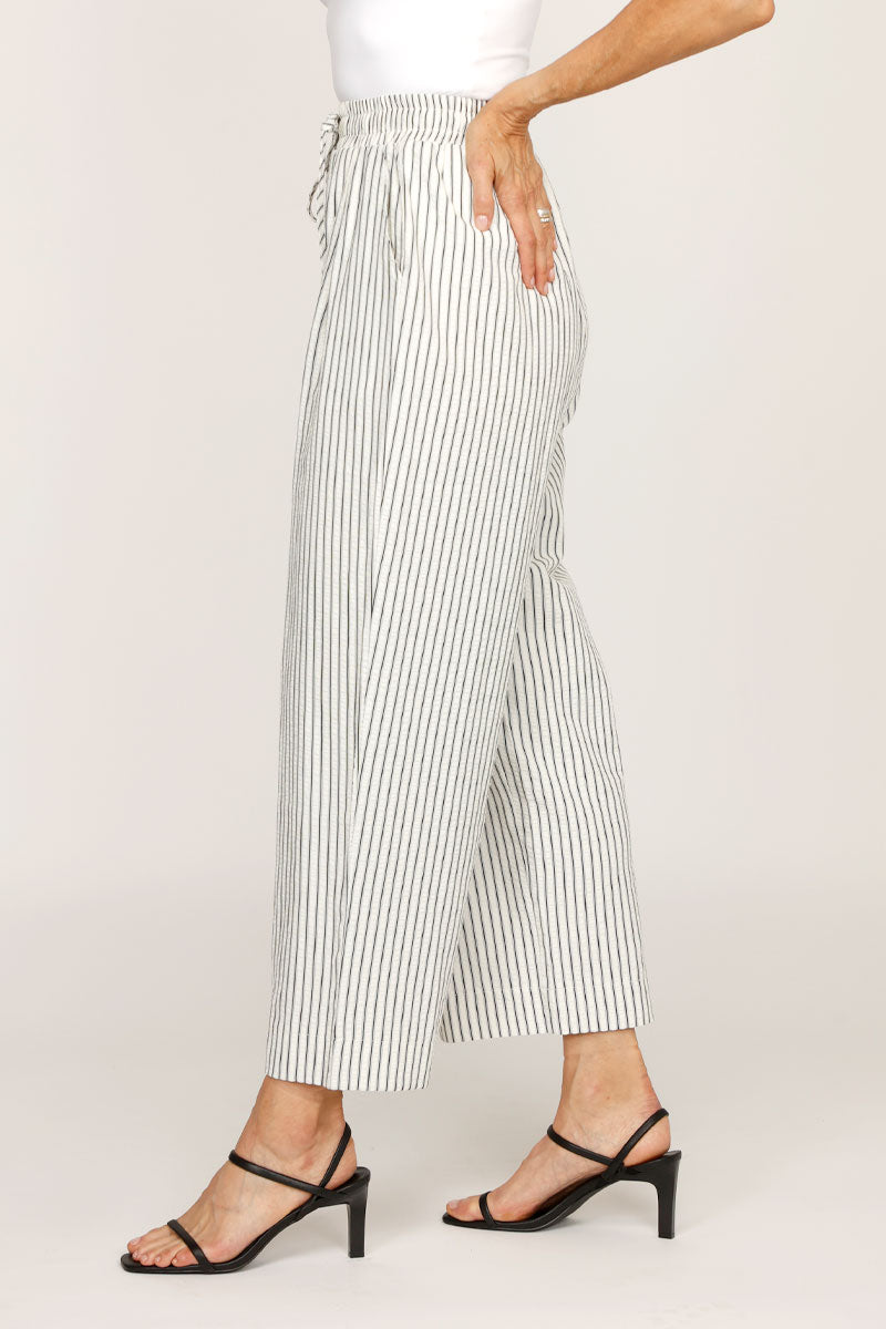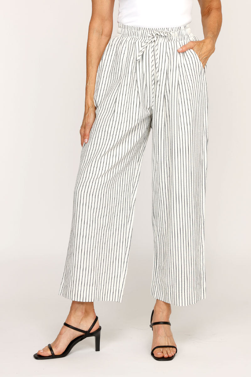 Meet your new warm-weather best friend: seersucker that actually stays crisp (no wrinkle drama here). We've swapped the fussy fabric for a poly-cotton blend that laughs in the face of humidity. Slip them on with zero effort thanks to the elastic drawstring waist and casually draped wide leg cut, and enjoy the slightly cropped length that's basically made for sunshine season. Pair with the Seersucker Stripe V Top or the Seersucker Stripe Jacket for an effortless put-together look.