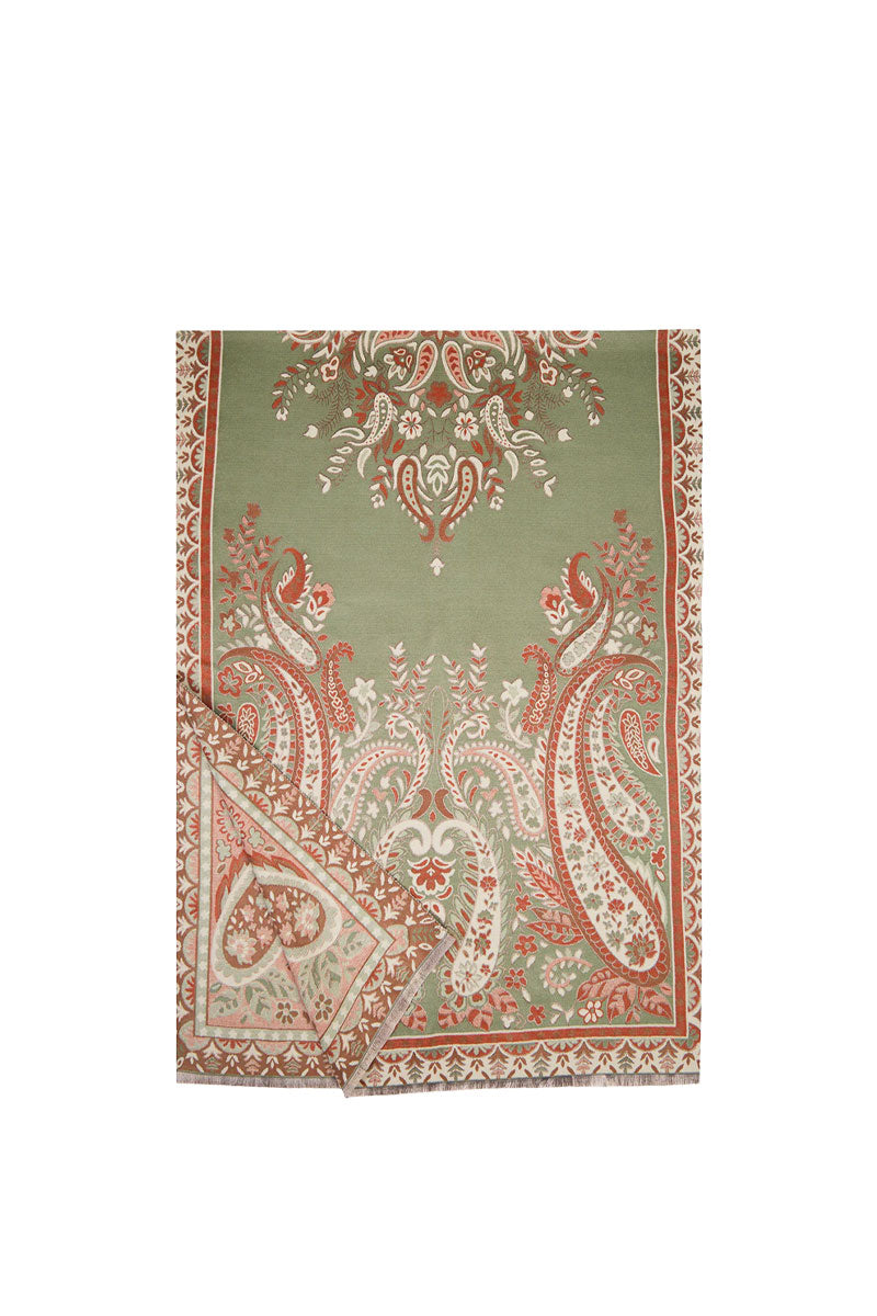 A timeless paisley motif gives this scarf its classic charm. The soft woven fabric drapes beautifully, while the subtle border detailing and reversible design make it easy to wear from season to season. Ideal for adding a touch of pattern to your everyday look!
